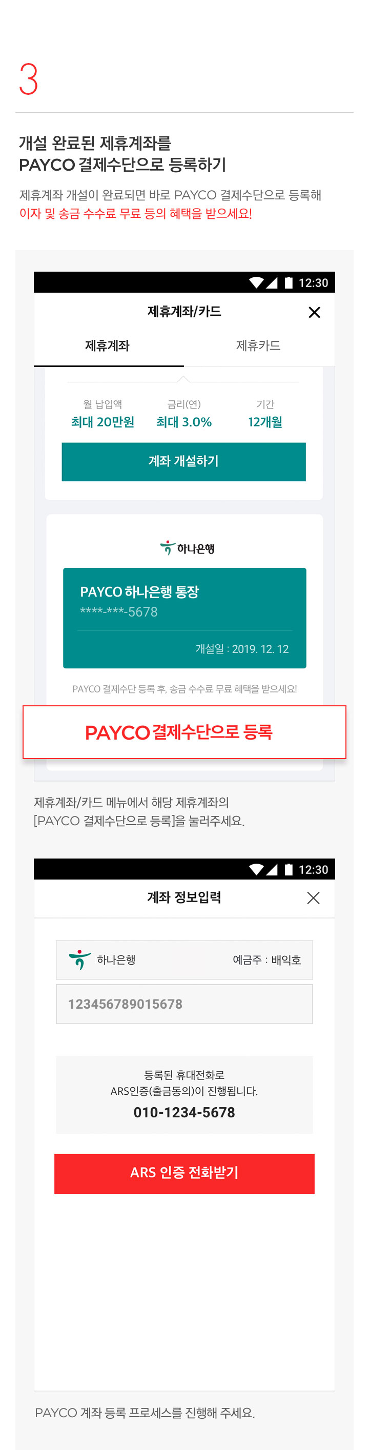 3. 개설 완료된 제휴계좌를 PAYCO 결제수단으로 등록하기